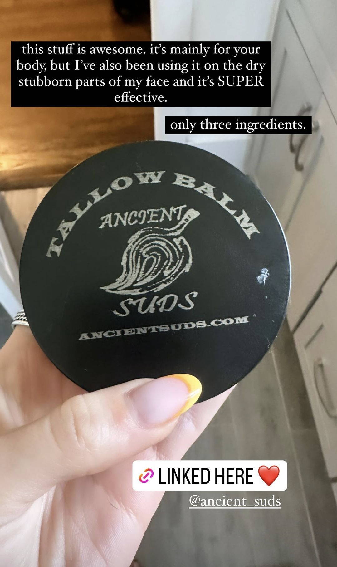 Ingredients: Grass fed beef tallow, Organic coconut oil, Bees wax